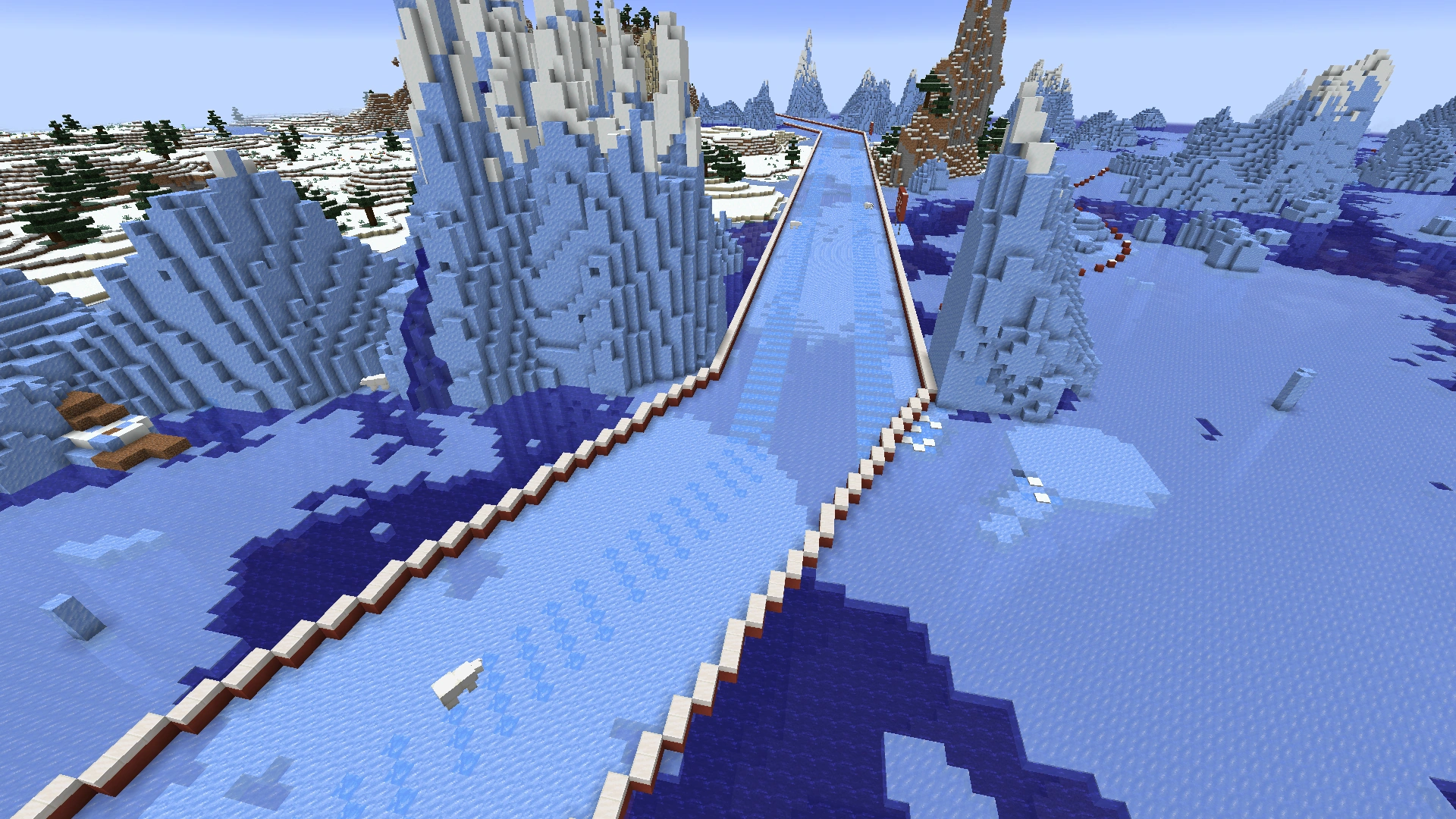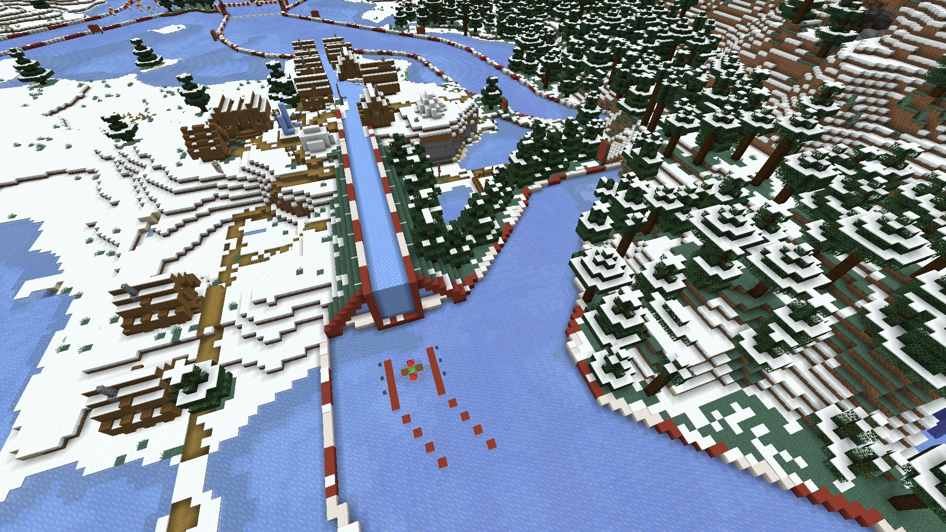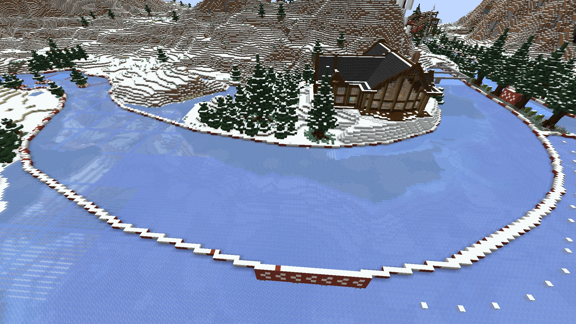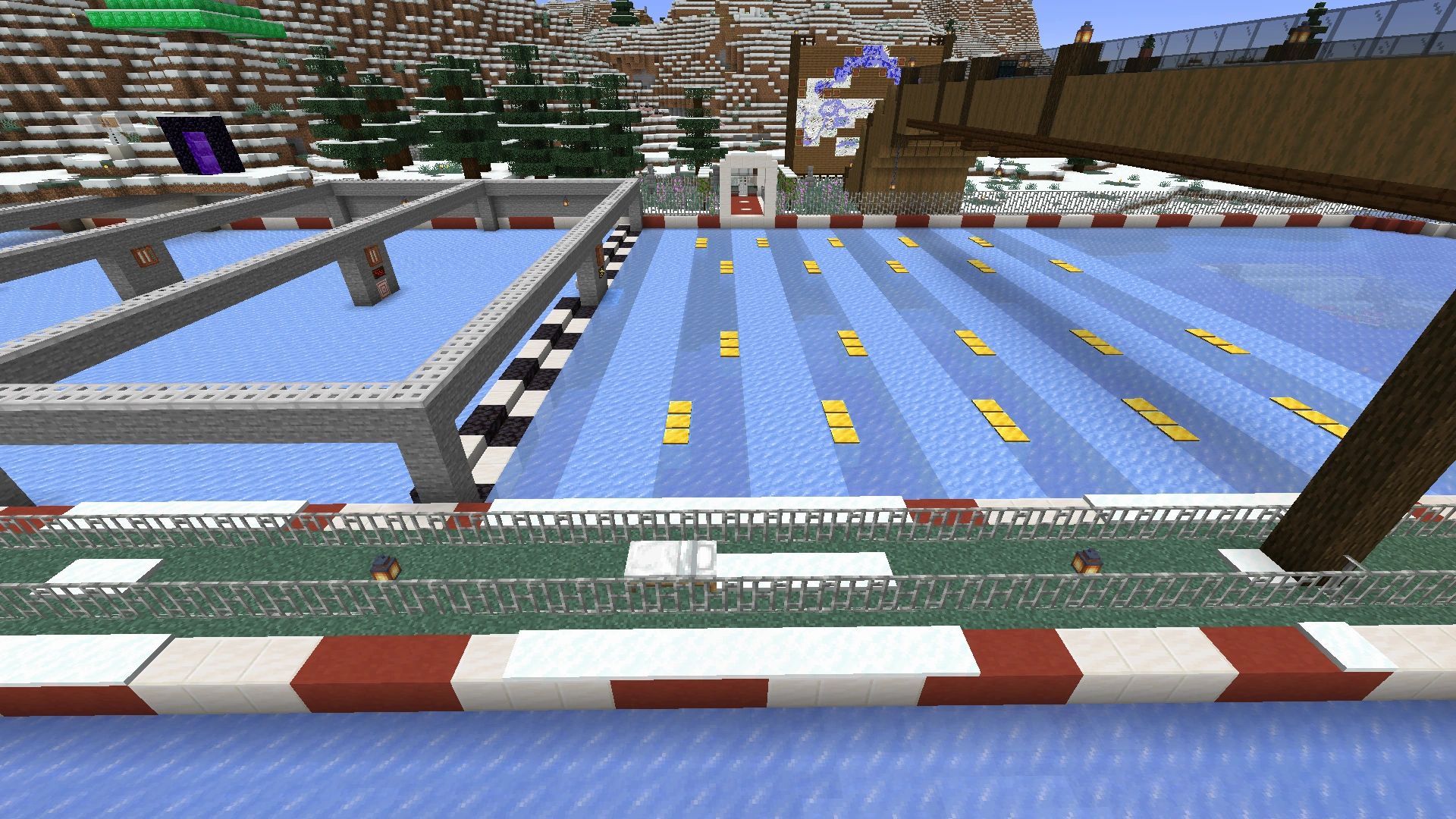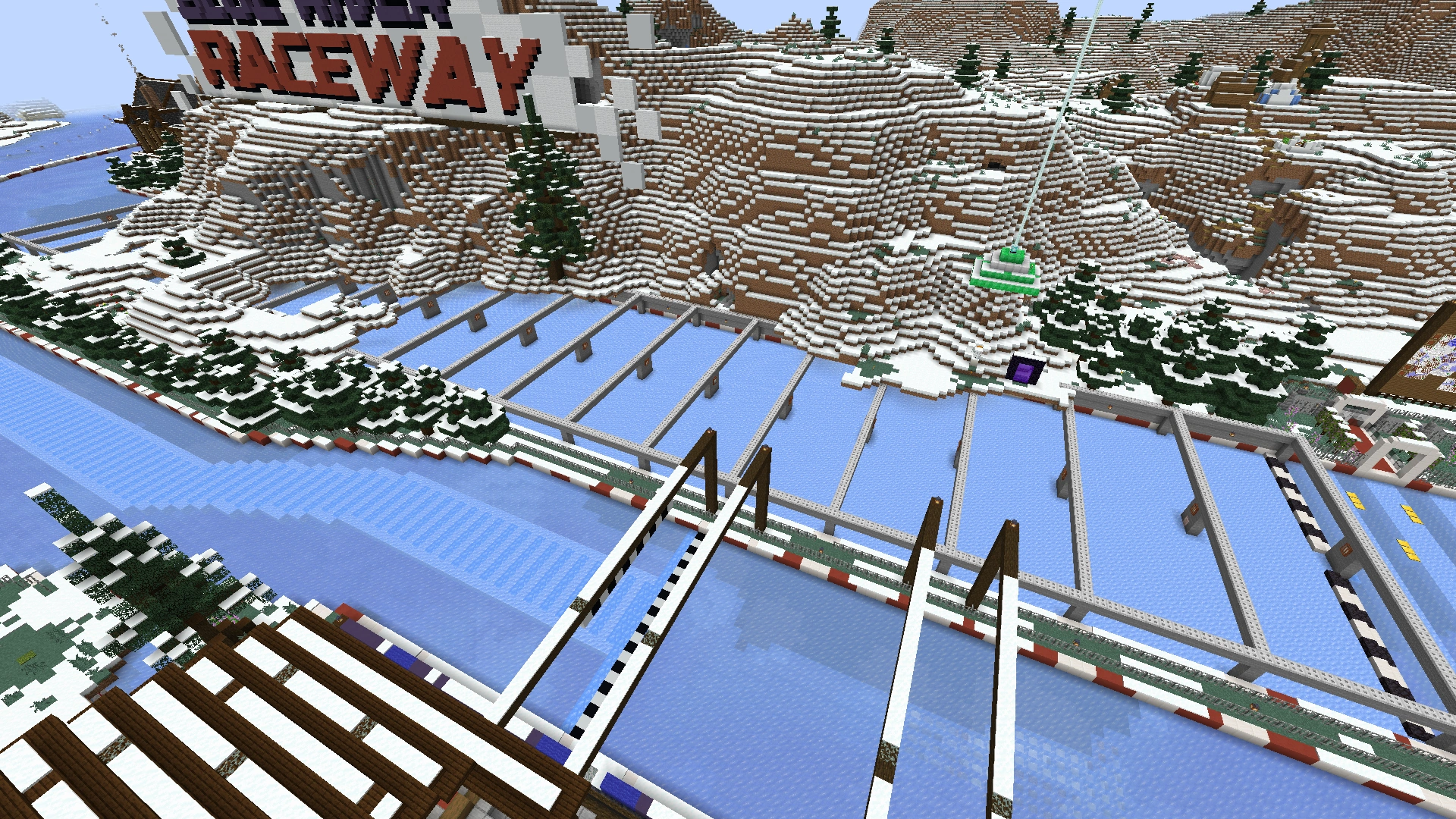 The Blue River Raceway[2] is a minigame in Season 9, created by EthosLab and Rendog. Later, FalseSymmetry was also involved to help expand the start area. It was a huge boat ice racetrack built on the frozen rivers of snowy tundra and frozen ocean.