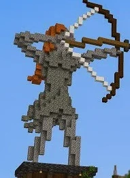 Gem's Bones, Bows n' Arrows is a shop in Season 9 owned by GeminiTay that sells Bones, Bows and Arrows. On top of the shop is an archer statue made from cobblestone with orange hair from acacia planks, the string of the bow is made from white wool, and the arrow is made from oak wood planks and deepslate, and the bow is made from dark oak.