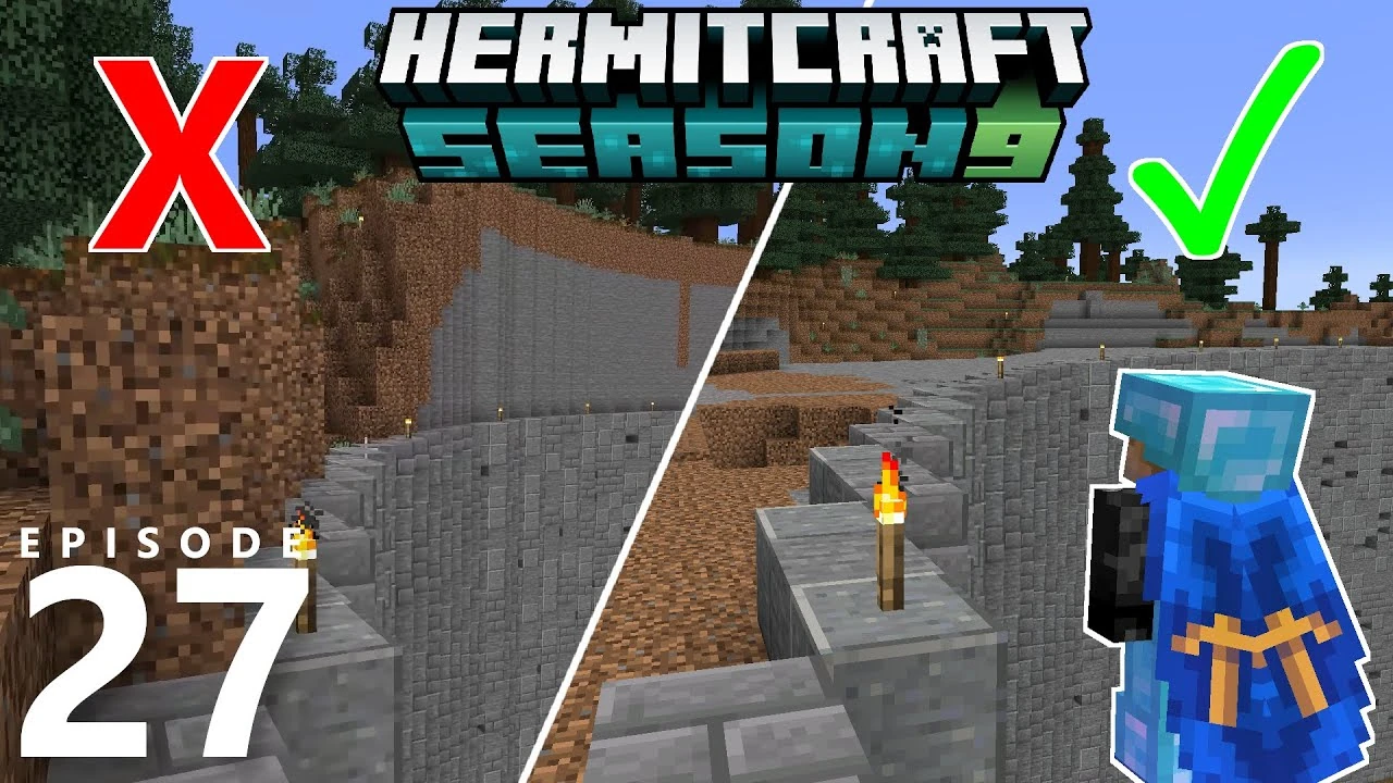 Today we're back on the HermitCraft server and going to perform some much needed base work! Last episode we decided on how the interior of the base walls should look, but now I've come to realize our base walls are only one block thick. I want to make the wall feel much more substantial and in order to do this we need to remove a lot of surrounding terrain. There will also be some PVP vs. Gem and we'll spy some ores. Lots of fun to be had!