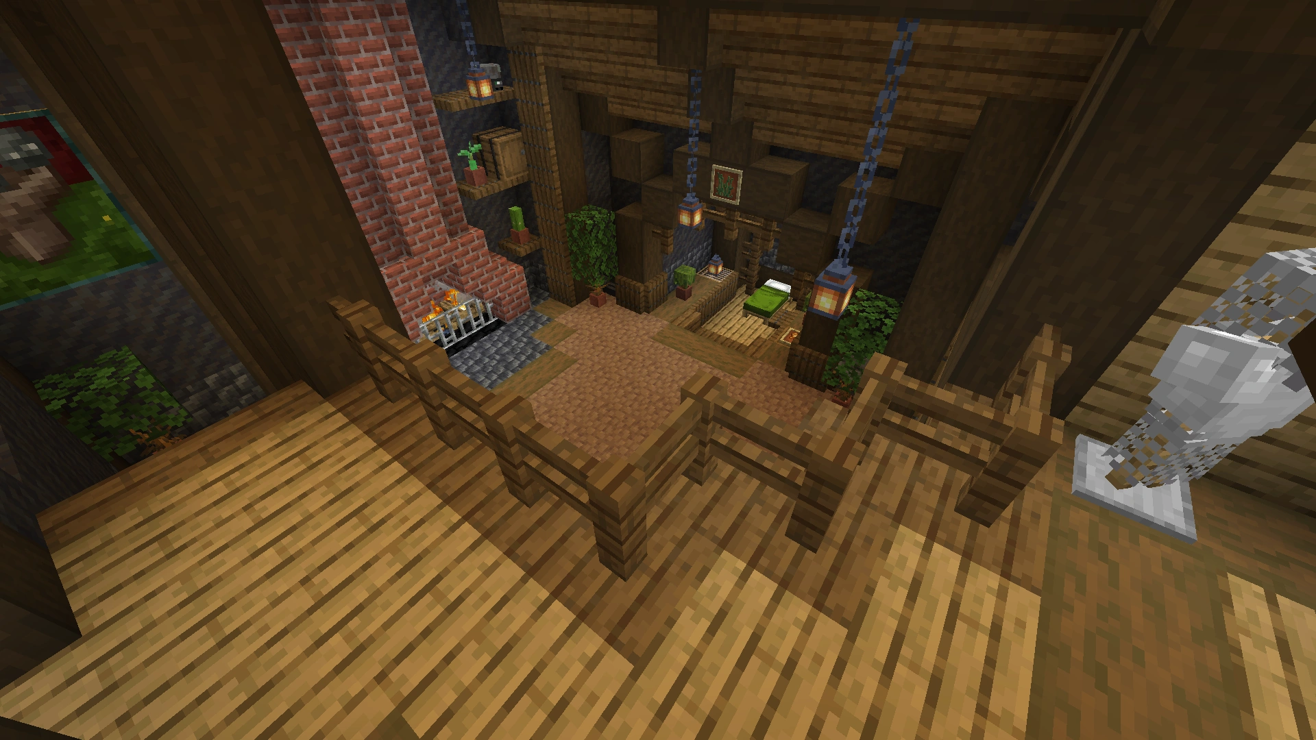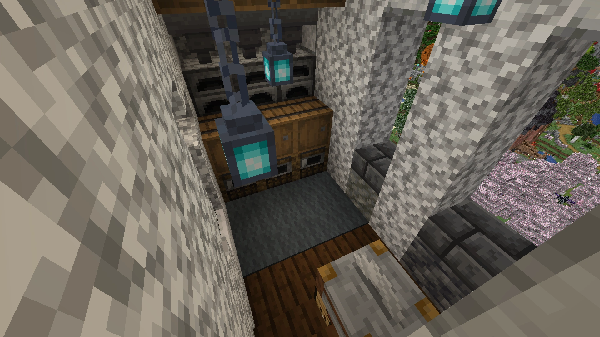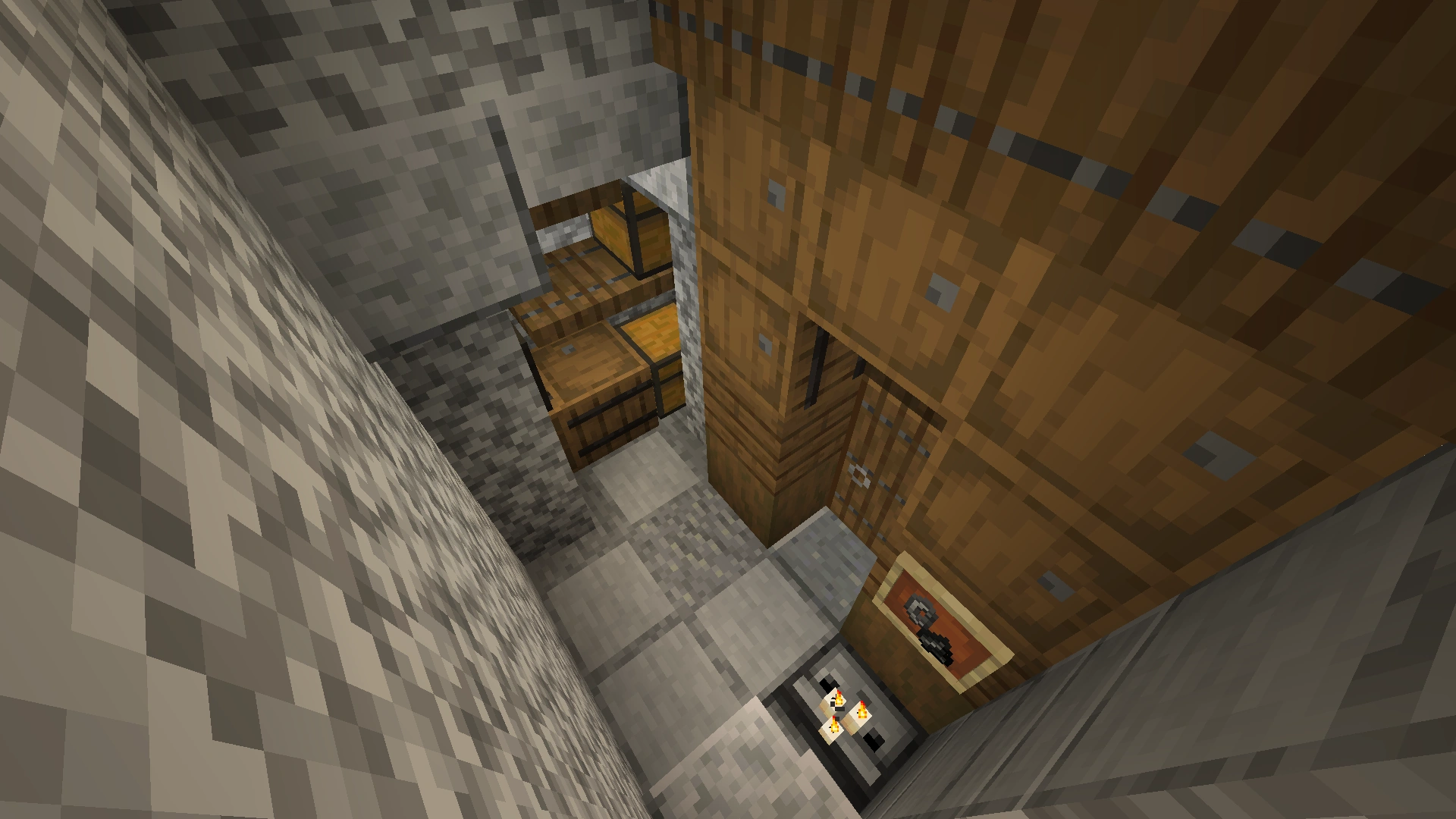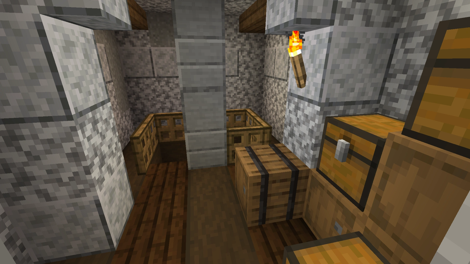 Two wooden platforms protrude from the walls (almost half the height and almost at the top), with access to the interior. They serve to make it easier to get to the upper floors with Elytra.[1]