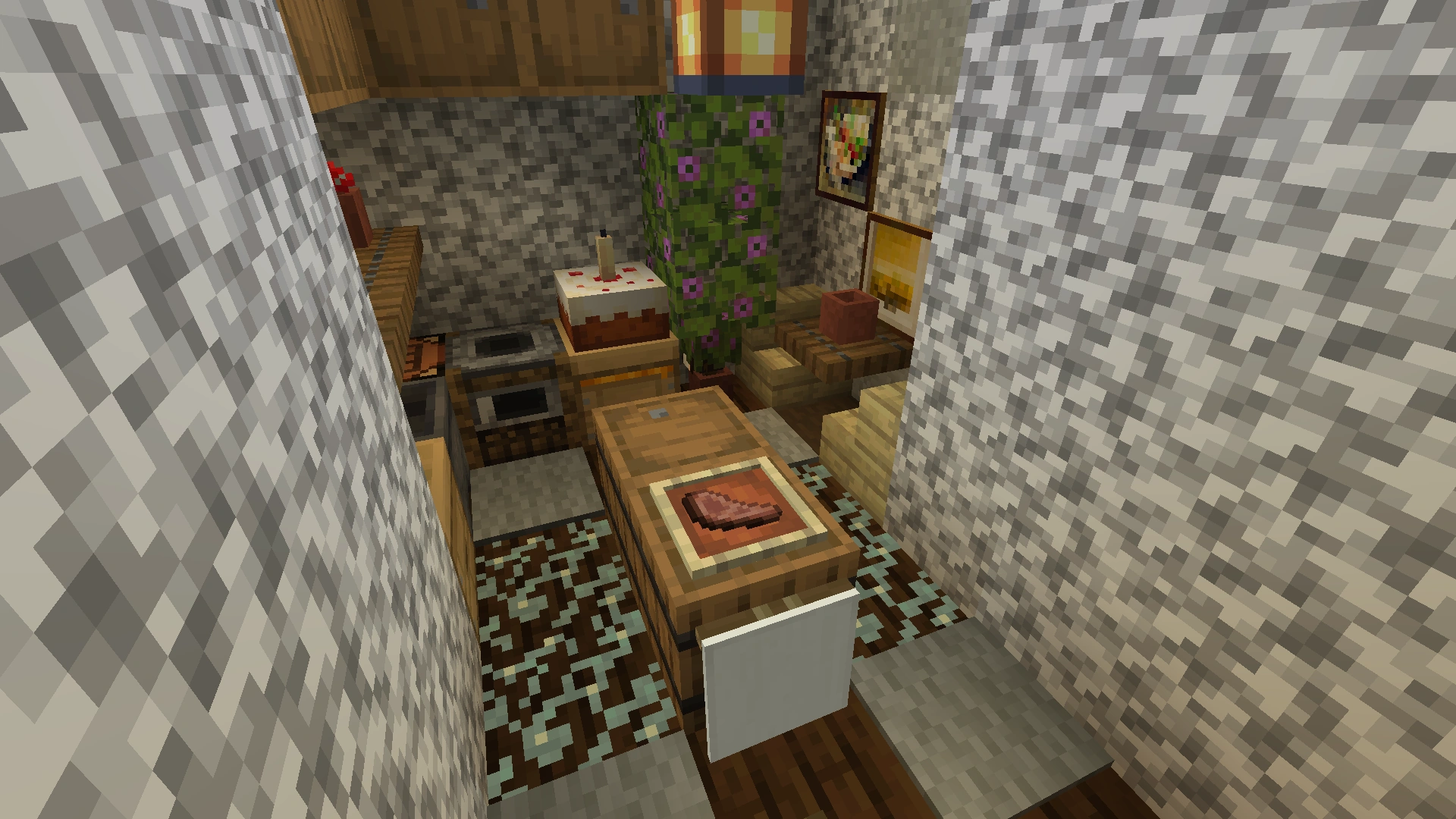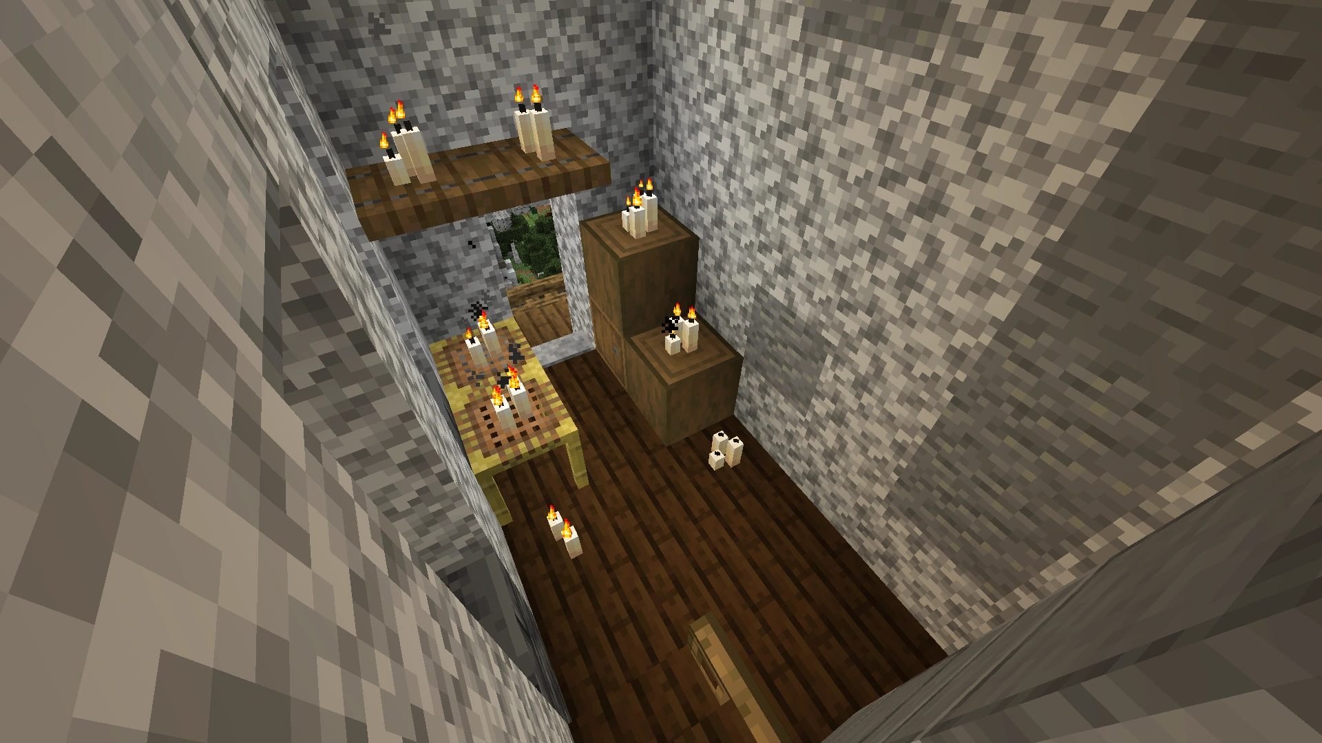 Space for Enchanting Table, decorated with bookshelves. Later, a door to the bridge that connects the Monolith with the Temple was also added there.[3] |