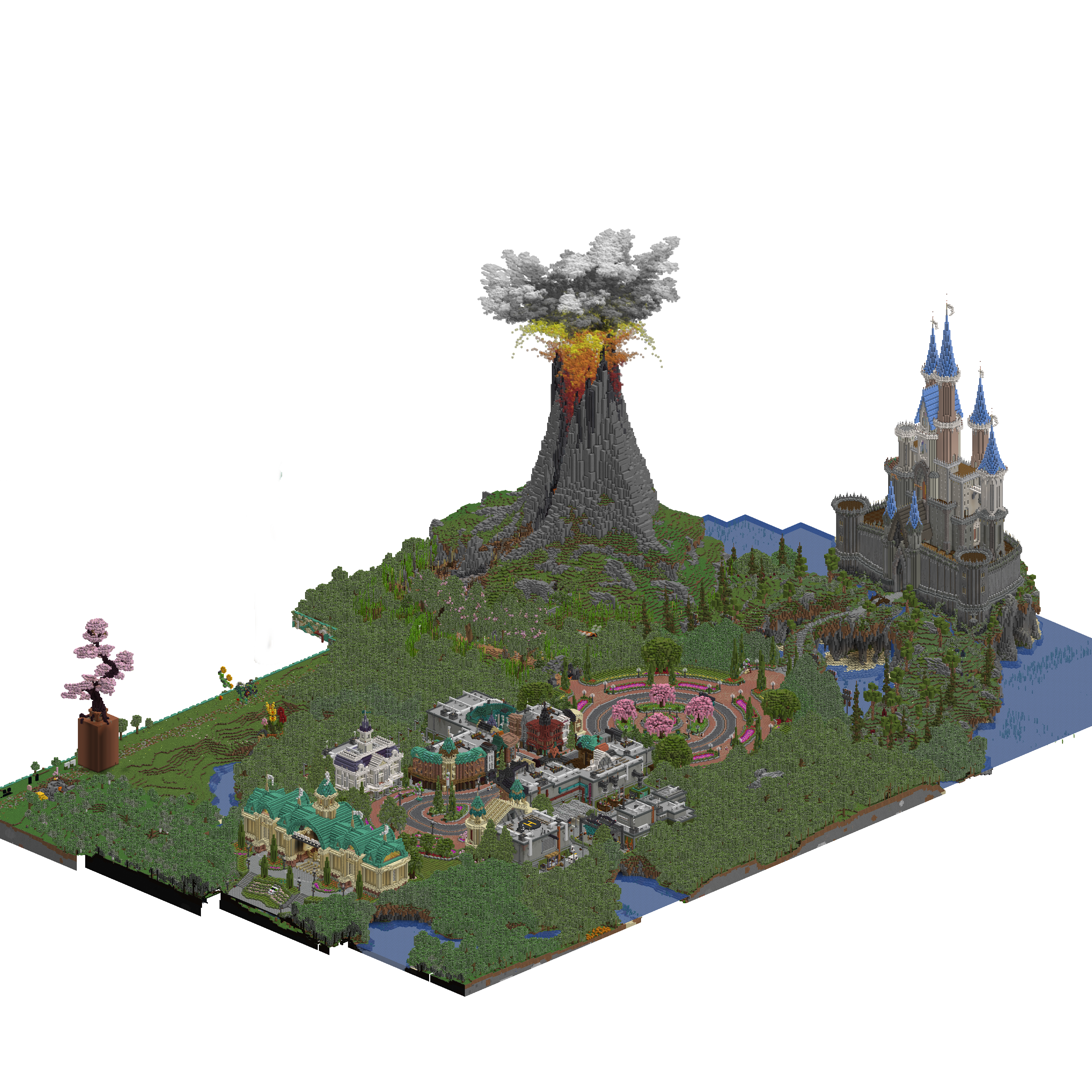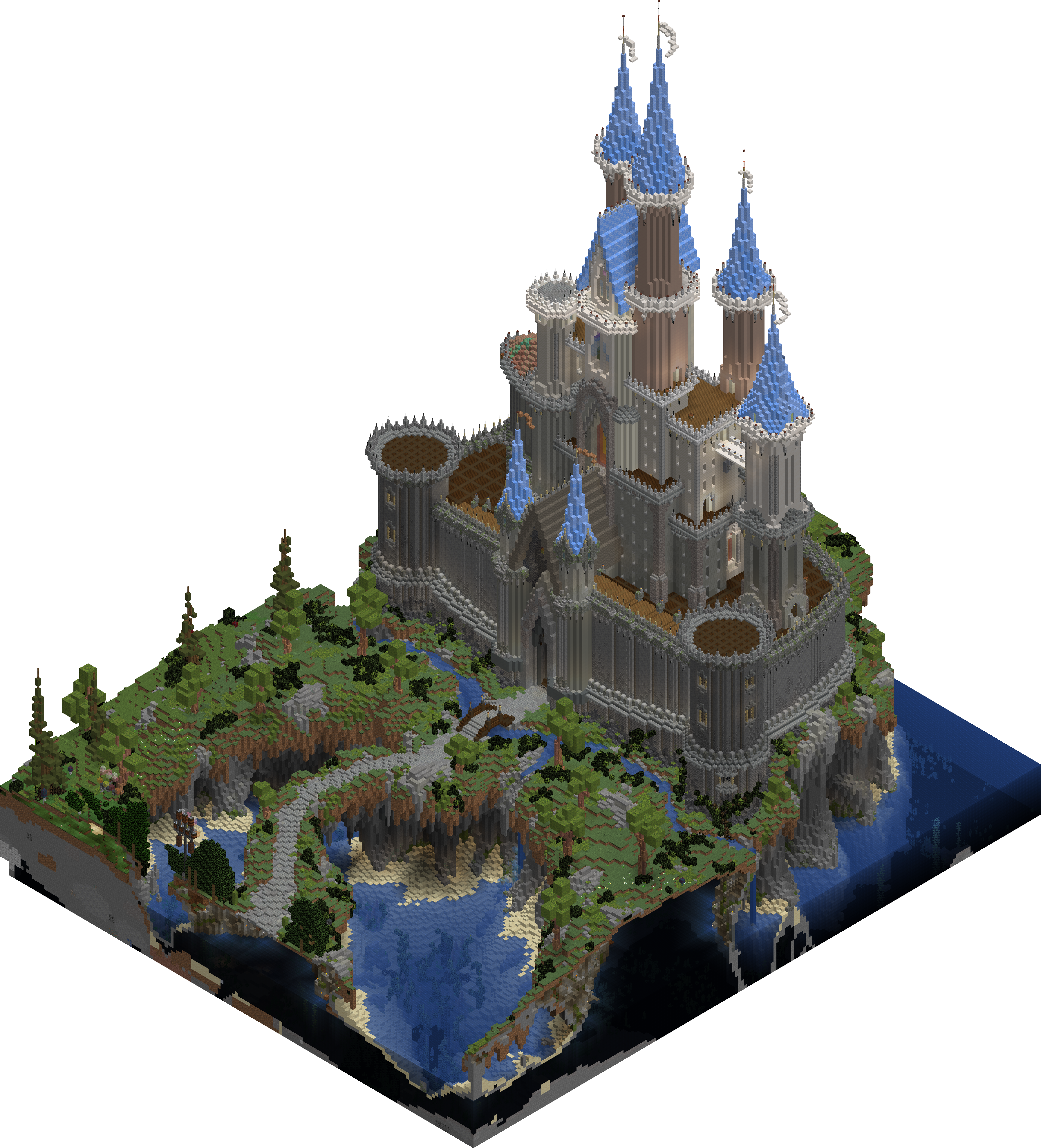 The Fantasy Isles are a set of islands created by GoodTimesWithScar. It features a fantasy castle on the largest island, a lagoon at the base of the largest island, and a set of small floating islands behind the castle that connects to the Shopping District.