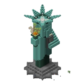 The Statue of Hermity is a prismarine build made by Xisumavoid based off the Statue of Liberty in New York City. It houses the gem villagers that trade gems for player heads and block heads underneath. It was built in the Season 6 Shopping District.