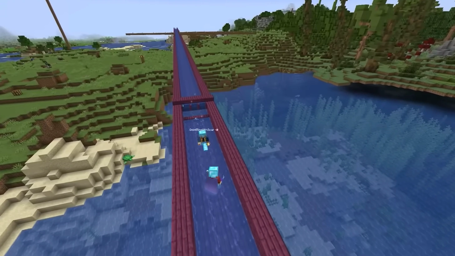To move forward with construction, Grian began collecting dolphins, which he had to place at boost stations spaced evenly along the highway. This made it possible to gain and maintain the Dolphin's Grace effect while traveling.
